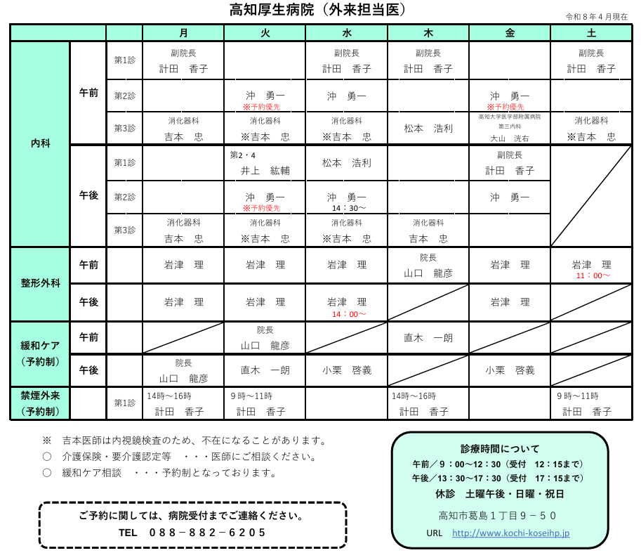 ※令和8年1月より、松本浩利医師が(水)午後、(木)午前に外来担当いたします。