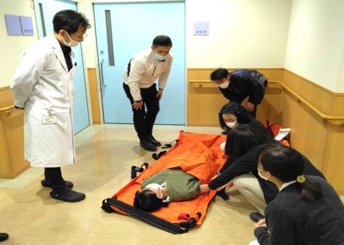 災害対策研修を実施し、今回はエアーストレッチャーの使用方法について学びました。 災害時、患者さんを避難させるため、当院ではエアーストレッチャーを導入しております どのような手順で進めるのか、実際人が入るとどれほどの重さになるのか確認! 持ち上げることなく運搬できるのが特徴で、女性でも運びやすかったです。 浸水の想定をし、迅速に避難できるよう備えていきます。 ![]() |