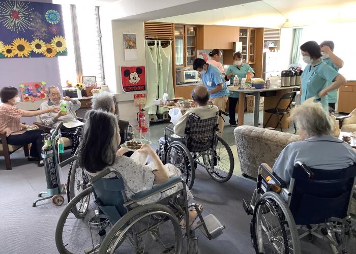 暑い夏を吹き飛ばす、楽しい夏祭りが緩和ケア病棟で開催されました(≧▽≦) ![]() ![]() 輪投げやヨーヨー釣りで景品を一発ゲットされた方もいらっしゃいました✨ たこ焼きや焼きそばも美味しく、 子どもの頃の思い出も蘇らせながら、ご家族も一緒に楽しんでいただけました! スタッフもともにする中で、みなさまの笑顔を見ることができて嬉しかったです(*^^*) ![]() ちょうど当日に、学生さんが「ふれあい看護体験」に来られており、 夏祭りにも参加していただきました! 今回を機会に、緩和ケアという分野にも興味を持っていただければありがたいですし、 いつか一緒にお仕事ができたら嬉しいですね✨ |
