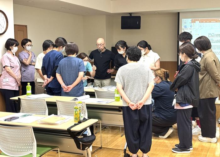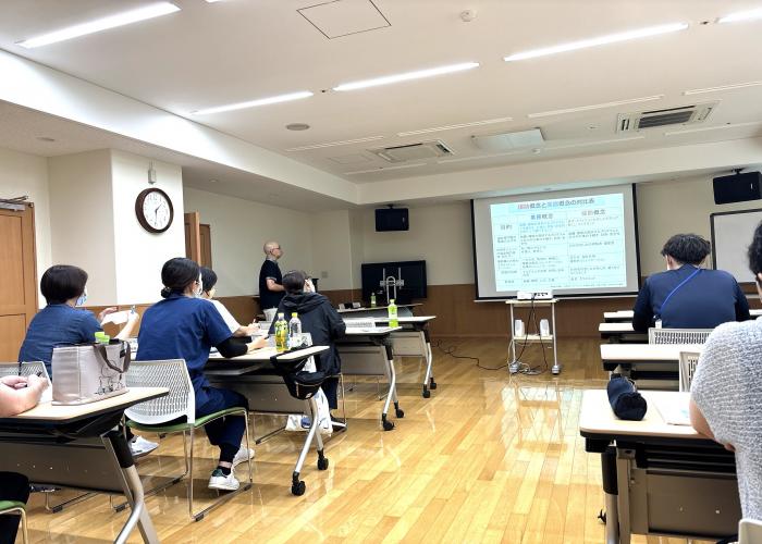 令和7年度緩和ケア地域勉強会が、8/23(土)と8/30(土)の午後から、二部構成で行われました。 講師は当院緩和ケア科、小栗医師 5つの訪問看護ステーション、院内の職員延べ29名(看護師、理学療法士、社会福祉士、事務職員)にご参加いただきました(^○^) テーマは『緩和ケアにおける鎮痛』と『緩和ケアにおける苦痛症状の緩和』 がん薬物療法、医療用麻薬の種類や選択の根拠、鎮痛効果の機序、がんによる苦痛・不快症状に対する緩和方法などを、詳しく楽しい雰囲気で学ぶことができました✨ 1日目の後半は、病棟と在宅で使用しているPCAポンプ(患者自己調節鎮痛法ポンプ)の使い方を実践。 医療用麻薬を在宅で使用する時の注意点なども確認し合い、疑問点などの意見交換できました✨ 小栗医師作成、新キャラクターのぷちマロくんも登場し、 2日目の参加者には修了証書として、素敵な手作り押し花しおりが贈られ、みなさんのほっこり笑顔が印象的でした。 このような勉強会を通し、顔の見える関係性を構築することは、地域に貢献する上でとても大切なことだと感じました。 小栗先生、ご参加いただいた皆さま、また準備に携わってくださった皆さま、ありがとうございました(*^^*) ![]() ![]() ![]() |